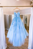 Kateprom Blue Tulle Long Backless A Line Prom Dress Evening Dress KPP1368