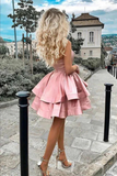 Kateprom Blush Pink A line One Shoulder Homecoming Dresses, Short Prom Dresses KPH0645