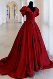 Kateprom Burgundy Off Shoulder Satin Long Prom Evening Dress KPP1612