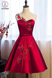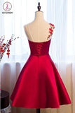Kateprom Burgundy Sheer Neck Knee Length Sleeveless Satin Homecoming Dress with Belt KPH0438