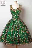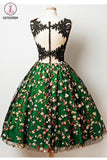 Kateprom Cheap A Line Green Sleeveless Knee Length Lace Homecoming Dress with Appliques KPH0376
