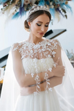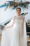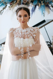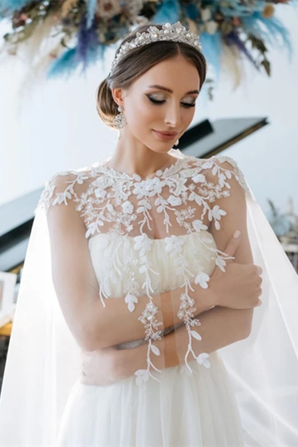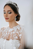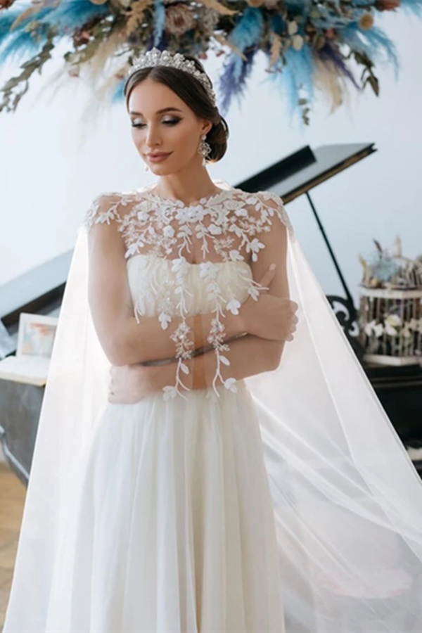 Kateprom Chic A line Ivory Tulle Applique Court Train Rustic Wedding Dress KPW0654