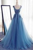 Kateprom Chic A line Scoop Beaded Long Prom Dress Tulle Applique Evening Party Dress KPP1502