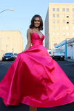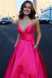 Kateprom Cute A line Deep V neck Lace up Pink Satin Long Prom Dresses KPP1482