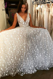 Kateprom Glitter V Neck Sleeveless Floor Length Prom Dress, Sparkly Long Party Dresses KPP1220