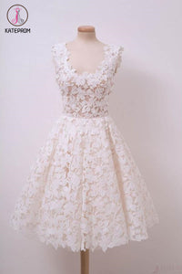 Kateprom Ivory Lace Knee Length Homecoming Dresses, A Line Scoop Sleeveless Graduation Dress KPH0442