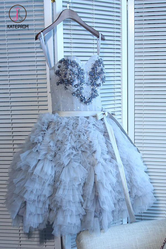 Kateprom Lavender Sweetheart Beading Tulle Short Homecoming Dress with Ruffles, Unique Tulle Dress KPH0330