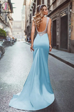 Kateprom Light Sky Blue Mermaid Prom Dresses Straps Modest Long Prom Dress Evening Dresses KPP1318