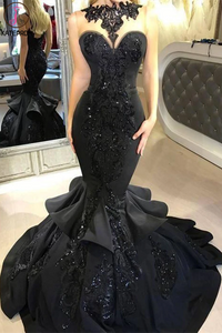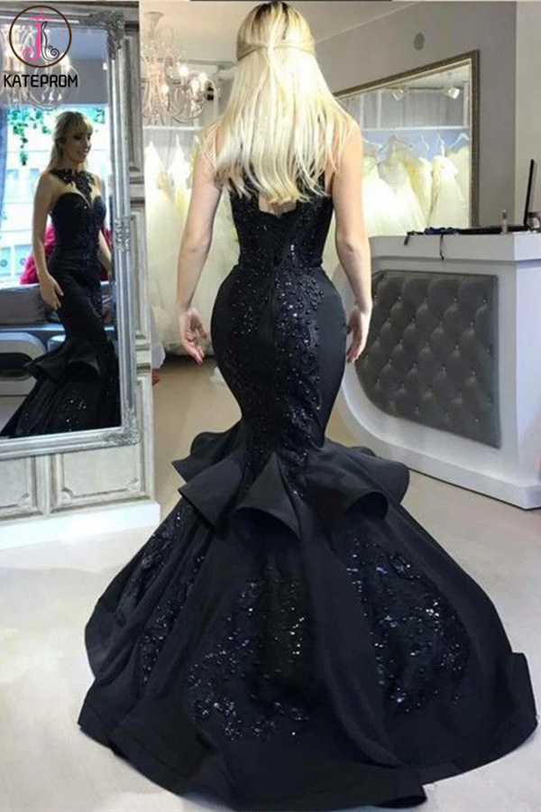 Kateprom Mermaid Prom Dresses Scoop Black Beading Long Prom Dress for Sale KPP1331