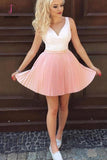 Kateprom Mini Pink V Neck Sleeveless Ruched Homecoming Dress, Short Pleats Short Prom Dress KPH0310