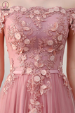 Kateprom Pink Off the Shoulder Short Tulle Prom Dress, Cute Homecoming Dress with Appliques KPH0504