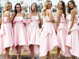 Kateprom Pink Strapless Asymmetric Satin Bridesmaid Dresses, Cheap Bridesmaid Dresses for Sale KPB0201
