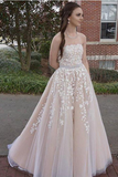 Kateprom Princess A line Strapless Tulle Long Prom Dress with Lace Appliques Wedding Dress KPW0662