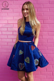 Kateprom Royal Blue Two Piece Satin Short Prom Dress with Pockets, Short Cocktail Dresses KPH0400