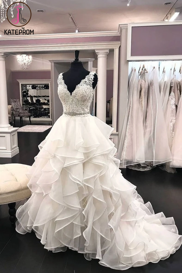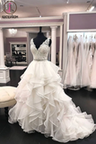 Kateprom Ruffled Organza Wedding Dresses Lace V neckline Bodice Party Dresses for Sale KPW0666