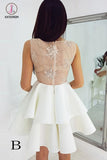 Kateprom See Through Two Layers Sleeveless V Neck Homecoming Dress, Short Lace Appliqued Prom Dress KPH0295