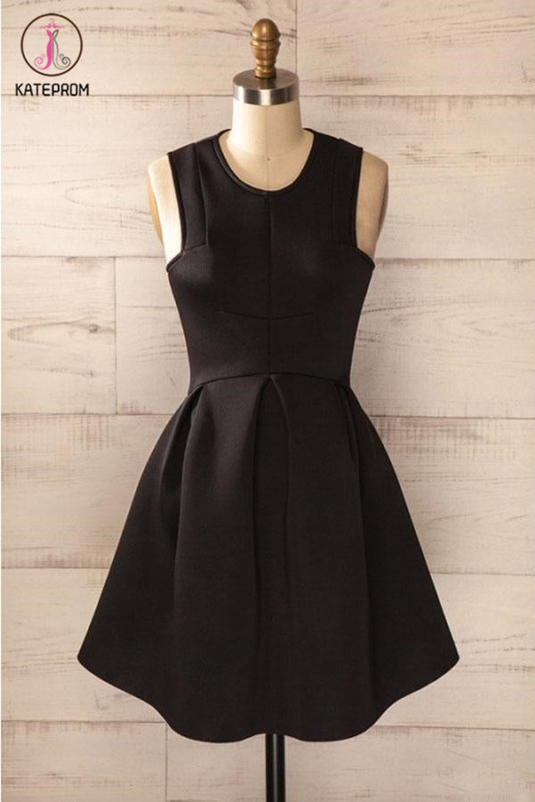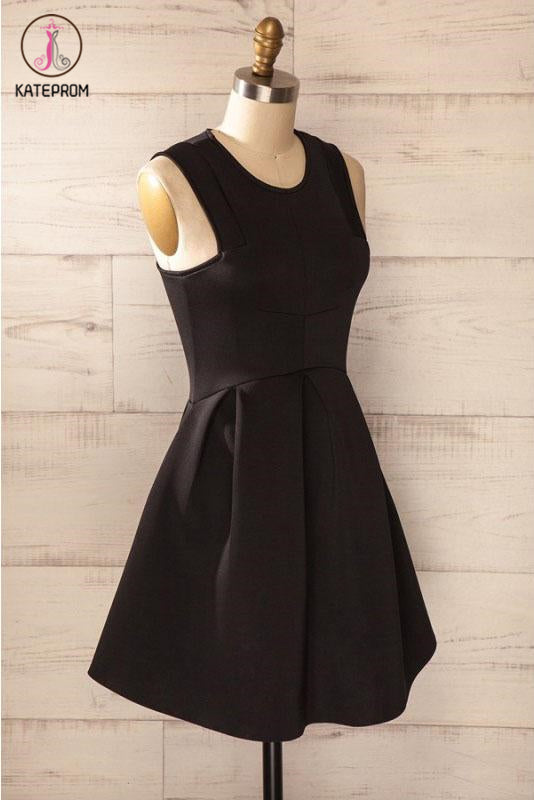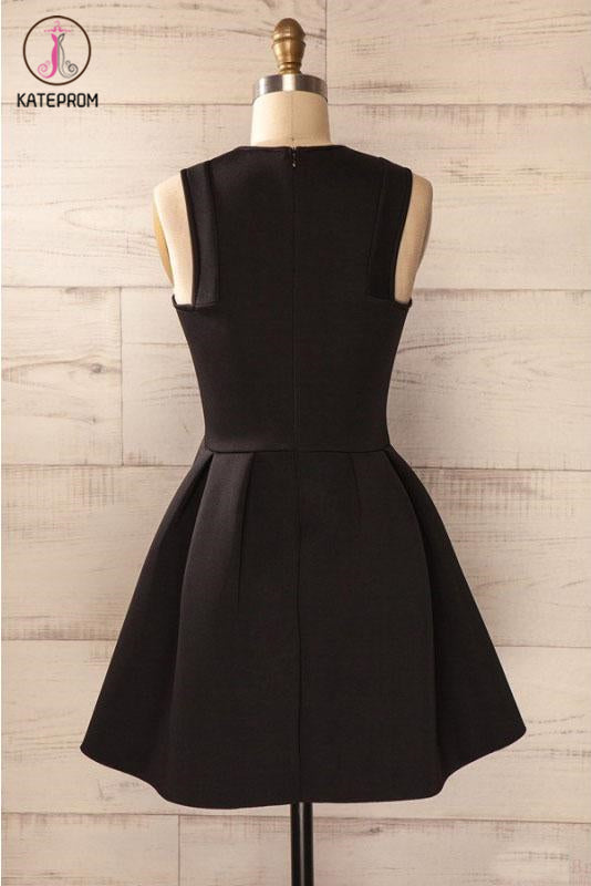 Kateprom Simple Satin Short Homecoming Dress, Cheap Black Sleeveless Mini Prom Dresses KPH0435