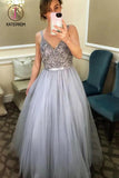 Kateprom Straps V Neck Tulle Dress for Prom Dresses, Beading Long Formal Dresses KPP0977