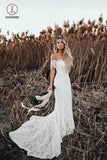 Mermaid Off the Shoulder Lace Beach Wedding Dress, Long Rustic Wedding Dresses KPW0445