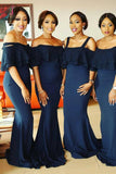 Navy Blue Mermaid Off Shoulder Ruffles Maid of Honor Gowns Bridesmaid Dresses KPB0119