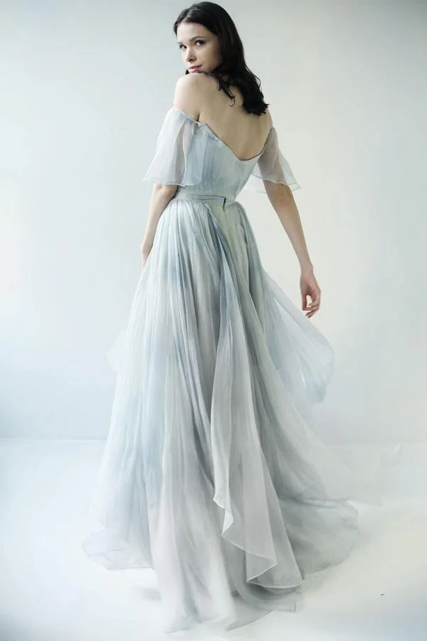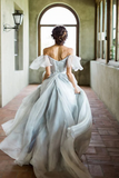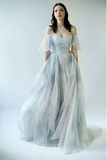 Light Purple A Line Tulle Floral Off Shoulder Sweetheart Evening Prom Dresses KPP2079
