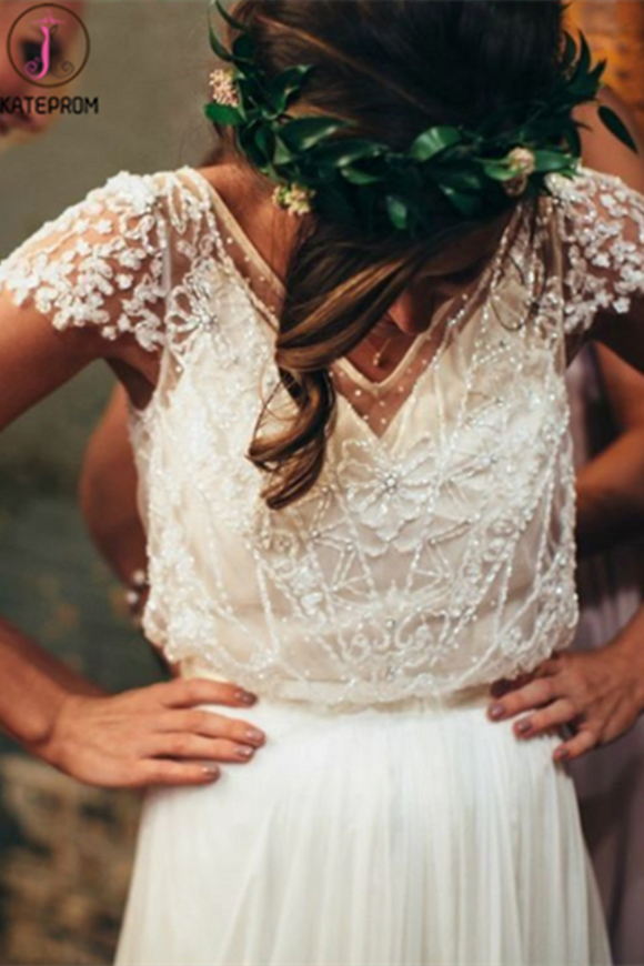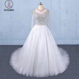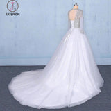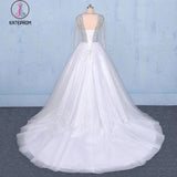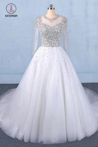 Puffy Long Sleeves Tulle White Wedding Dress, Shiny Long Bridal Dresses KPW0487