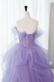 Purple Lace Floral Tulle Long Prom Dresses, Purple Tulle Long Lace Formal Evening Dresses KPP1875