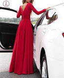 Sexy Green Deep V Neck Long Sleeves Floor-length Prom Dresses Leg Split Evening Gowns KPP0268