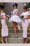 Short A-line V-neck Tulle Appliques Lace Long Sleeve Unique Bridesmaid Dresses KPB0023