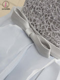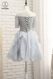 Silver Off-the-shoulder Homecoming Dress Half Sleeve Short Prom Dress Party Dress with Band KPH0194