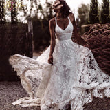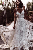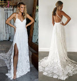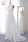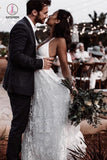Straps Long Lace Wedding Dresses, Charming Lace Beach Wedding Dresses KPW0461