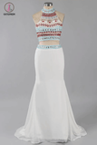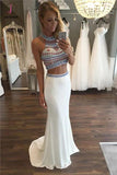 Two Piece Halter Sleeveless Ivory Beaded Prom Dress with Sweep Train,Prom Dress Long KPP0219