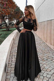 Two Piece Prom Dress with Long Sleeves, Floor Length Evening Dress with Lace KPP0838