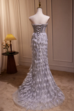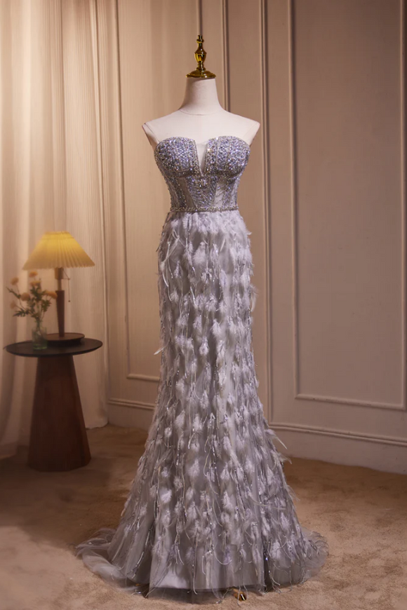 Unique Sweetheart Neck Mermaid Gray Long Prom Dress with Beads KPP1960