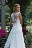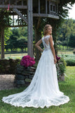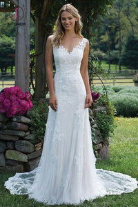 Vintage V Neck Sleeveless Tulle Lace Appliqued Wedding Dress, Long Bridal Dresses KPW0286