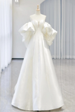 White A Line Satin Long Prom Dress, White Satin Long Formal Dress KPP1842