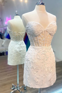 White Lace Short Sweetheart Homecoming Dress, White Graduation Dress KPH0727